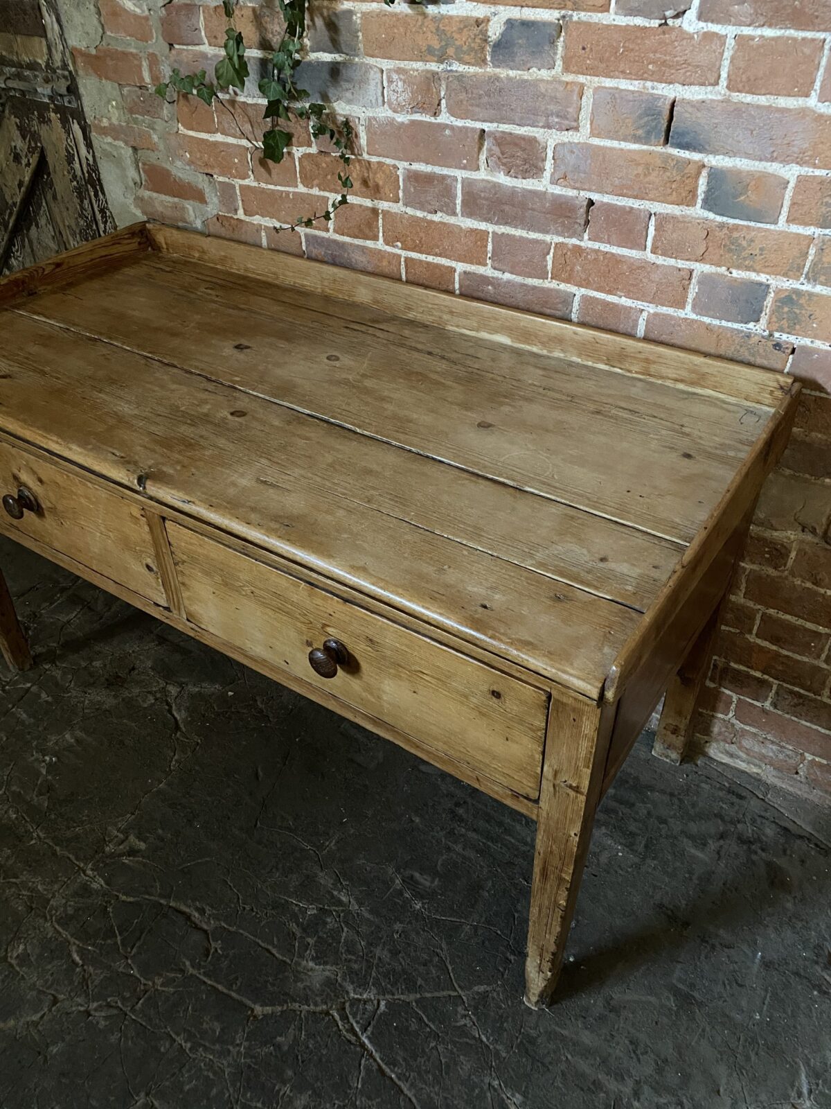 Two large spacious drawers fulfilling the width of the piece. One drawer has been lined with baize and a series of compartments compliment the drawer